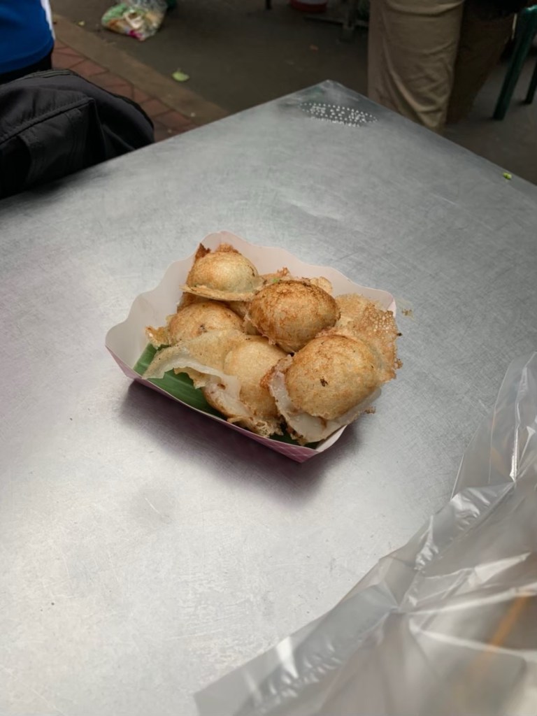 たこ焼きやん!と買ってしまった現地メシ。フォルムこそたこ焼きだが、中身は甘く、たこ焼きとは完全に別のものだった。が、これはこれで面白い。因みに中にたこは無し。